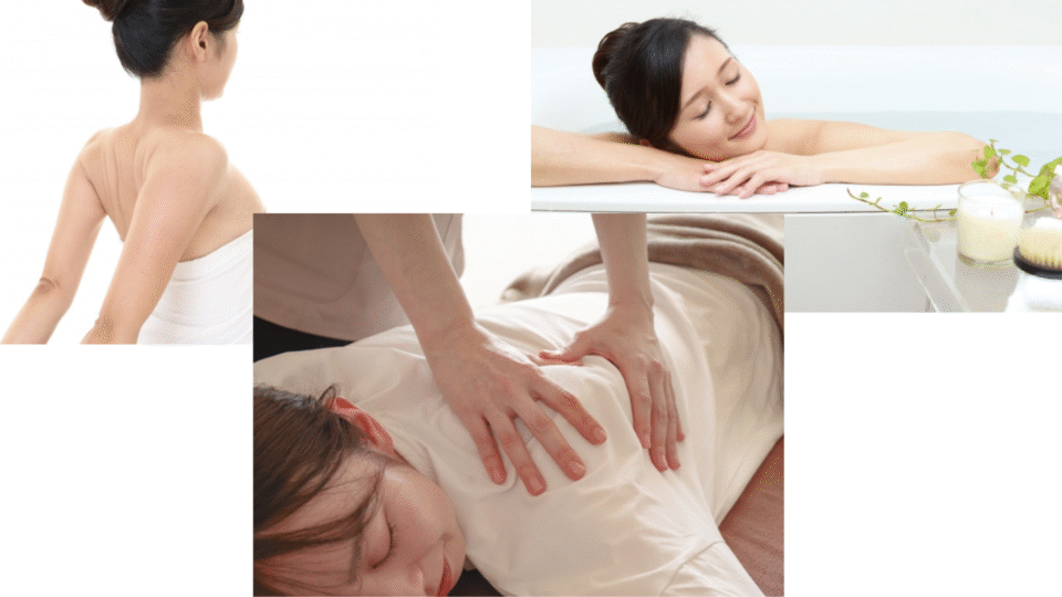 筋肉をほぐすだけではなく、姿勢と骨盤のバランスを整え、肩や首の負担を減らすことが最重要です。