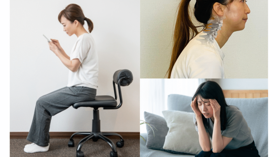 スマホを操作したり、パソコンを見下ろしたりする姿勢が日常化しており、