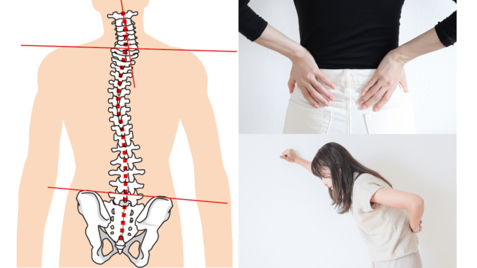 骨盤の歪みで背骨のS字カーブが崩れると、腰に直接負担がかかり、筋肉が緊張してぎっくり腰を引き起こします。